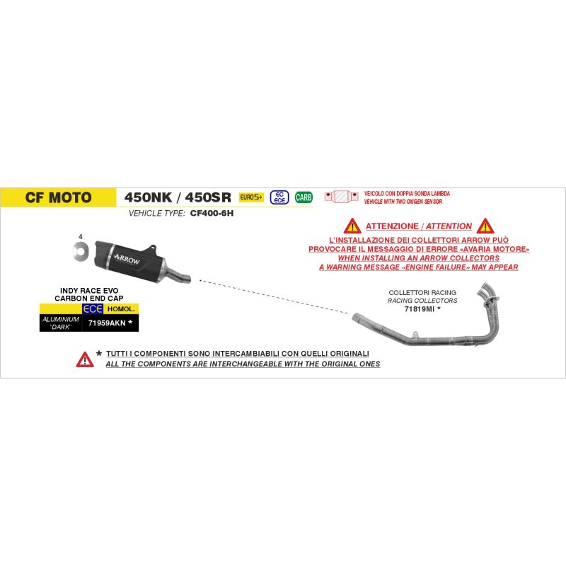 Collecteur pot d'échappement ARROW pour silencieux arrow ou d'origine pour moto CF MOTO NK 450 SR 450