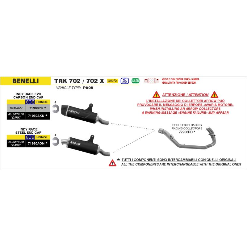 Pot d'Échappement ARROW INDY-RACE homologué avec db killer amovible pour BENELLI TRK 702 TRK 702 X se monte directement sur le collecteur d'origine ou arrow afin de composer vot...