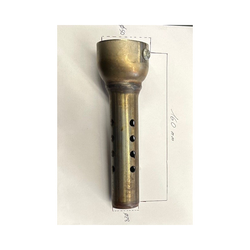 DB Killer Universel , Diamètre 50mm , 160mm de long, vendu à l'unité , produit universel à adapter sur votre échappement trop bruyant, mesurez bien : le diamètre intérieur - la forme et le mode de fixation de votre échappement pour pouvoir adapter votre db killer universel. sur cette longue version il est pas nécessaire d'enrouler de la laine de roche autour, étant assez long et à double chambre, convient particulièrement aux échappements vide qui font beaucoup de bruit.