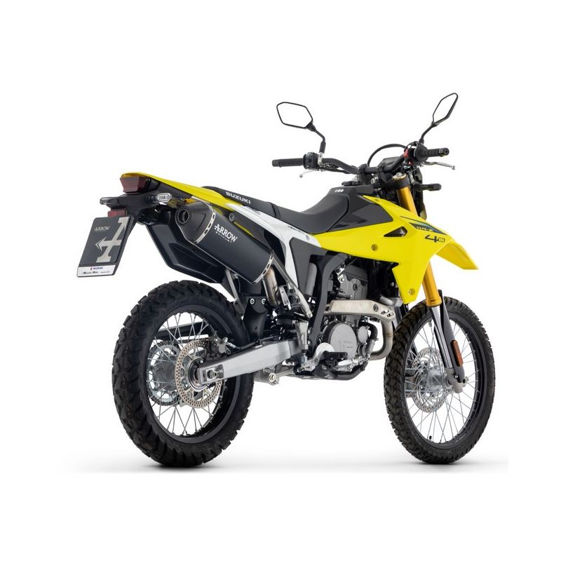 pot d'Échappement ARROW EXPLORER homologué en différentes finitions pour SUZUKI DR-Z4S DR-Z4SM monte directement sur le collecteur d'origine ou arrow afin de composer votre ligne d'échappement