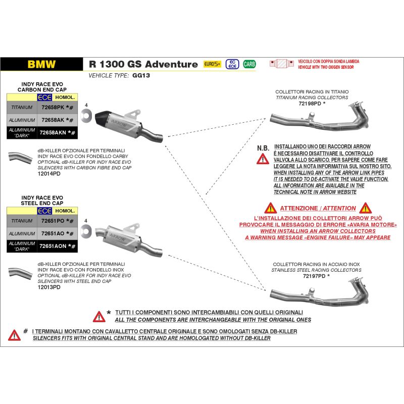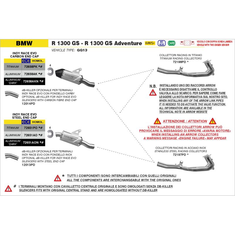 Échappement ARROW INDY RACE homologué pour moto BMW R1300GS R1300 GS ADVENTURE R1300R R1300 RS se monte directement sur le collecteur d'origine ou avec l'option collecteur arrow afin de composer votre ligne complète d'échappement