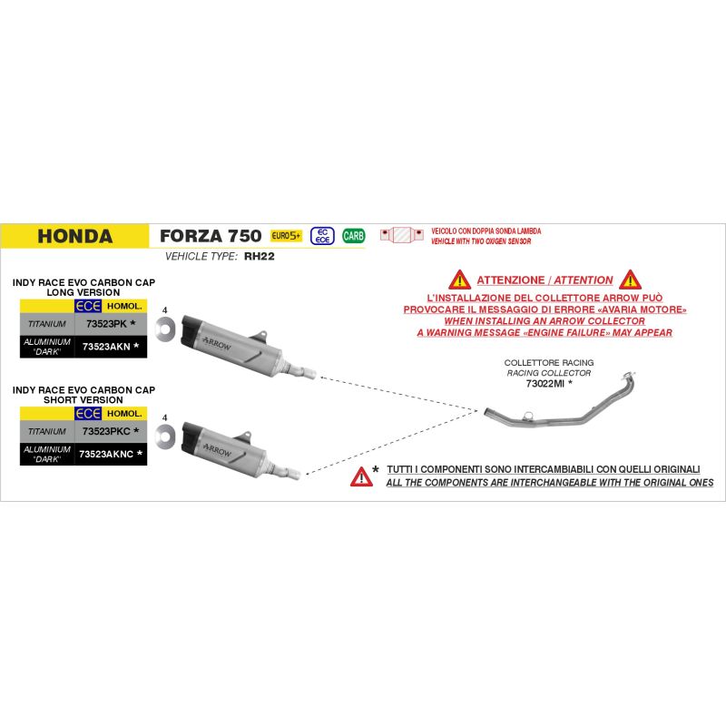 ARROW est toujours attentif aux exigences croissantes des usagers qui réclament la possibilité de s'équiper de systèmes d'échappements homologués, tout en garantissant de bonnes prestations et un look réussit.