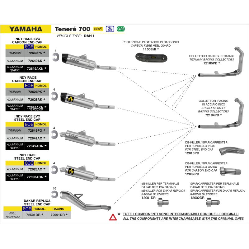pot d'Échappement ARROW INDY RACE homologué pour moto YAMAHA XTZ 700 TENERE se monte directement sur le collecteur d'origine ou avec l'option collecteur arrow afin de composer votre ligne complète d'échappement