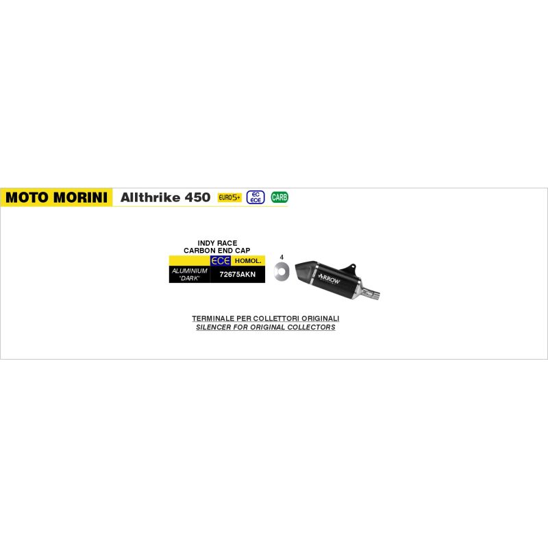 pot d'Échappement ARROW en différente finition homologué pour MOTO MORINI Allthrike se monte directement sur le collecteur d'origine