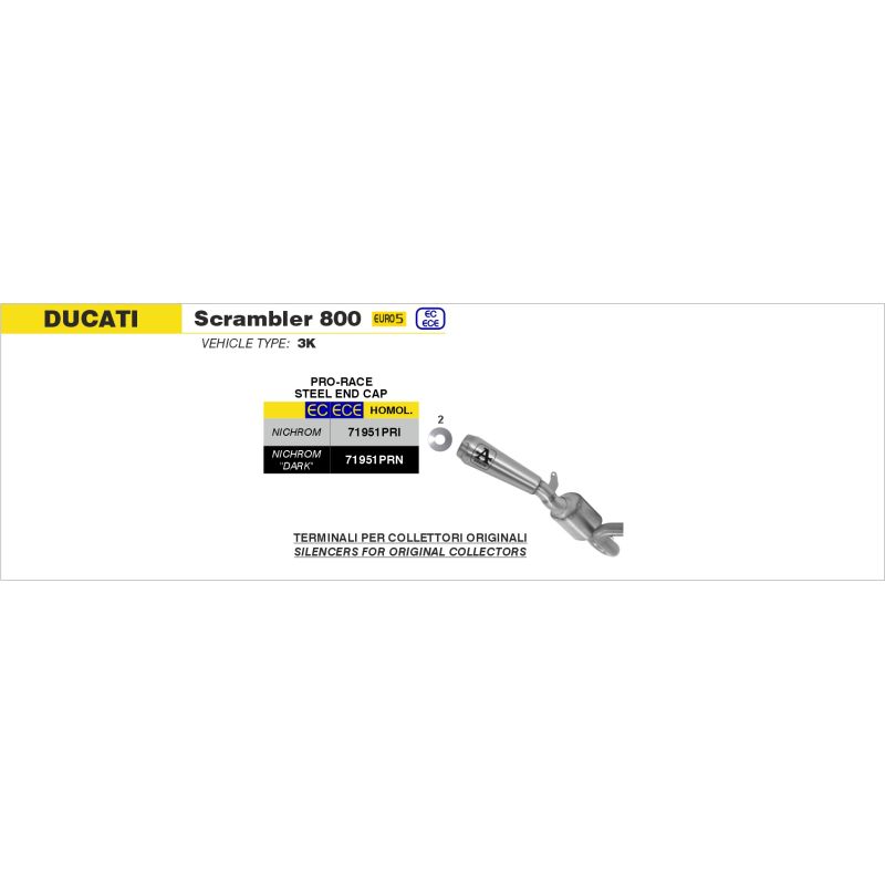 pot d'Échappement ARROW PRO-RACE DUCATI 800 SCRAMBLER homologué à monter directement sur le collecteur d'origine
