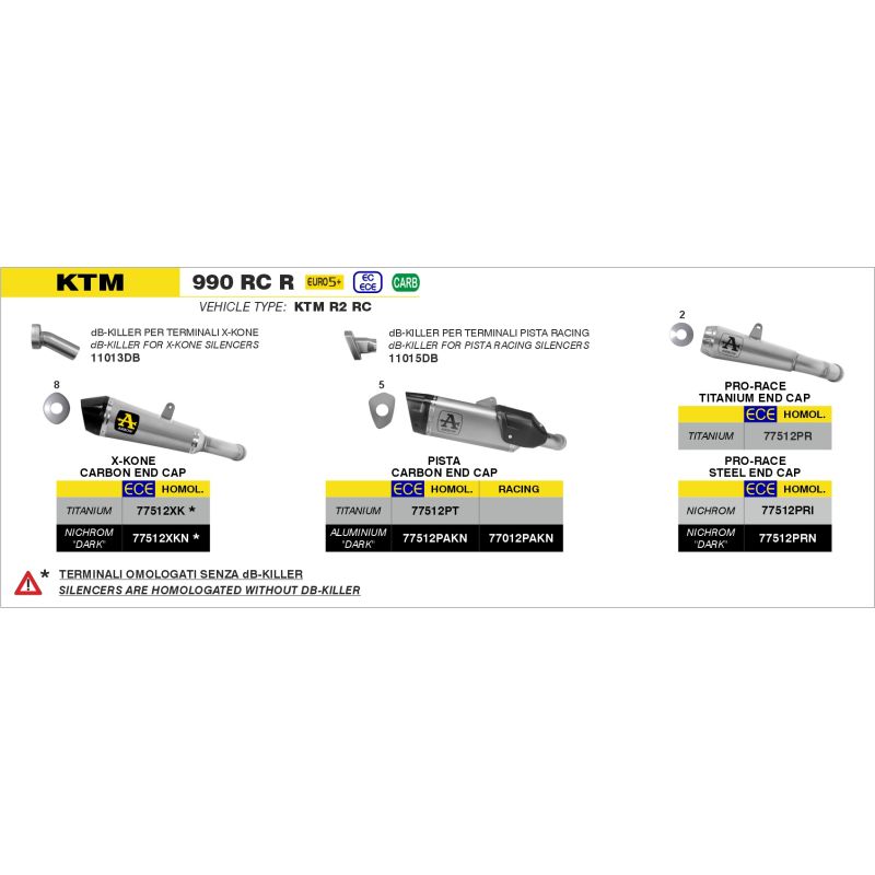 pot d'Échappement ARROW homologué pour KTM 990 RC-R se monte directement sur le collecteur d'origine