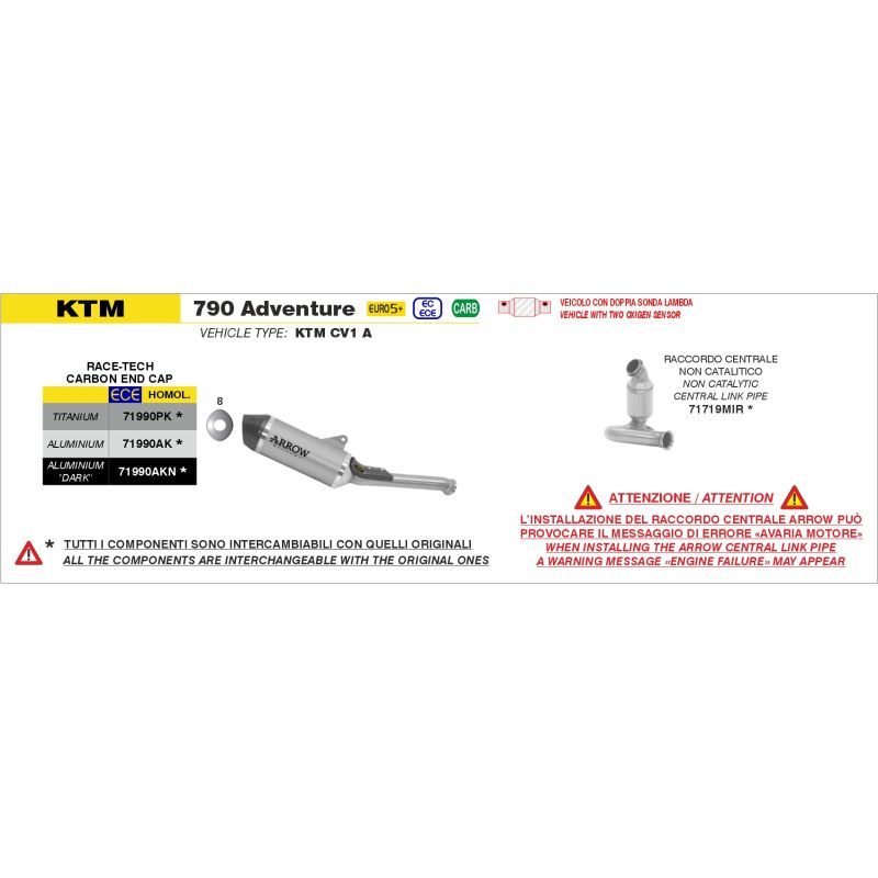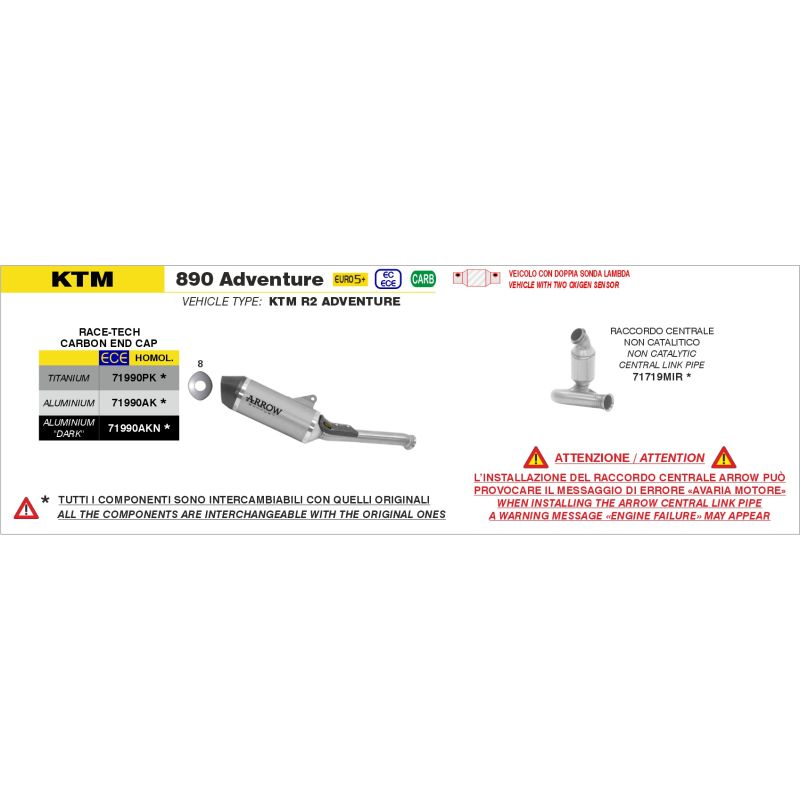 pot d'Échappement ARROW RACE TECH embout carbone pour KTM 790 ADVENTURE 890 ADVENTURE HUSQVARNA 901 NORDEN pour le collecteur d'origine ou arrow