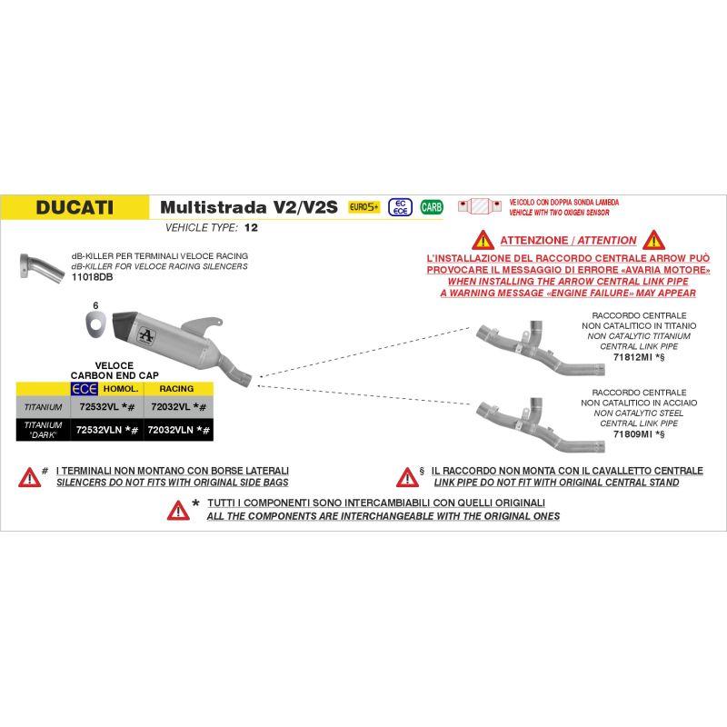 pot d'Échappement ARROW VELOCE racing non homologué pour votre moto DUCATI MULTISTRADA V2 V2S