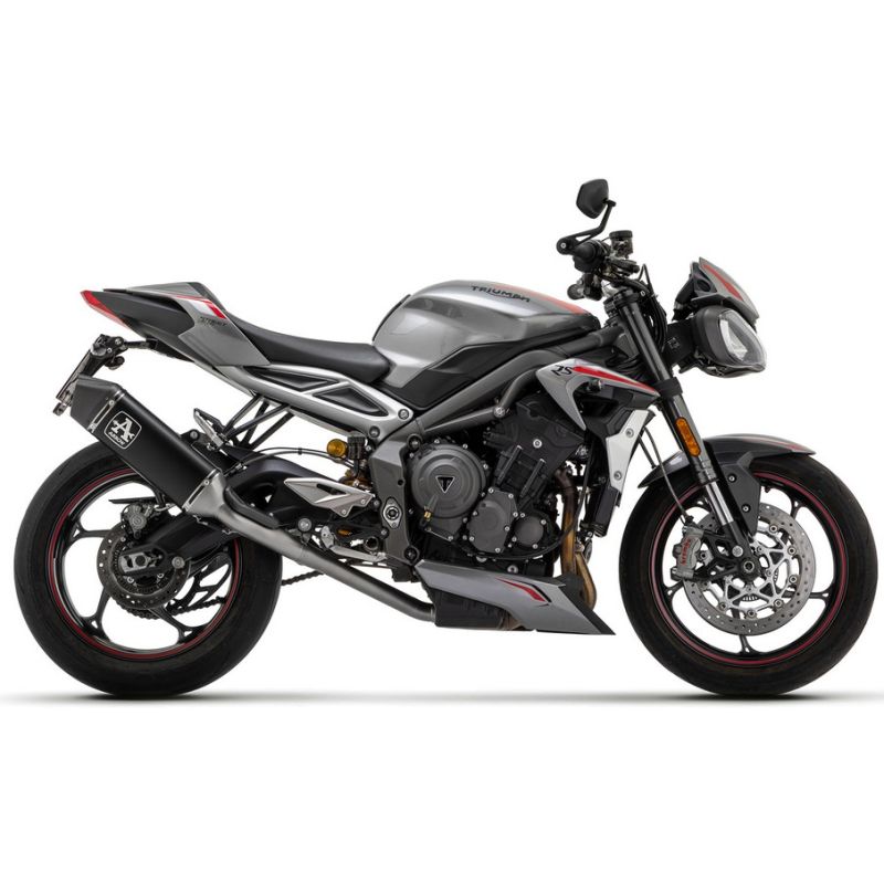pot d'Échappement ARROW VELOCE en alu noir homologué ou racing pourTRIUMPH 765 STREET TRIPLE se monte directement sur le collecteur origine