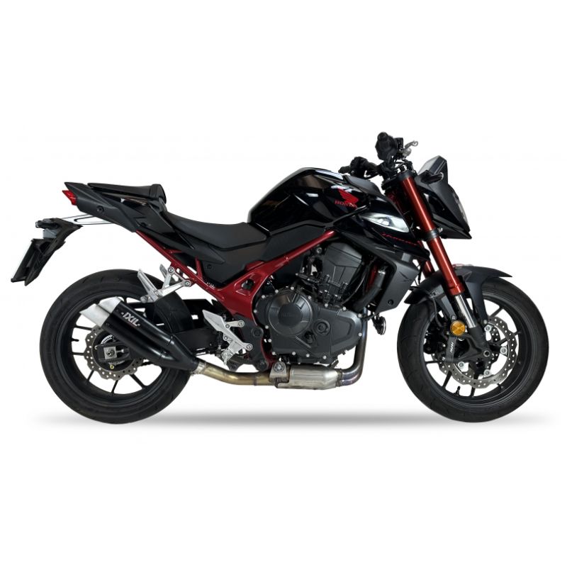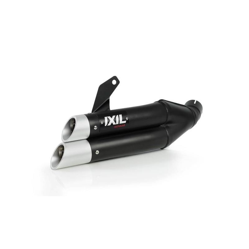pot d'Échappement IXIL L3XB DUAL HYPERLOW HONDA CB 750 HORNET. Un silencieux bouble flute court en inox noir avec embout alu taillé dans la masse, livré avec le nécessaire de montage. Silencieux homologué