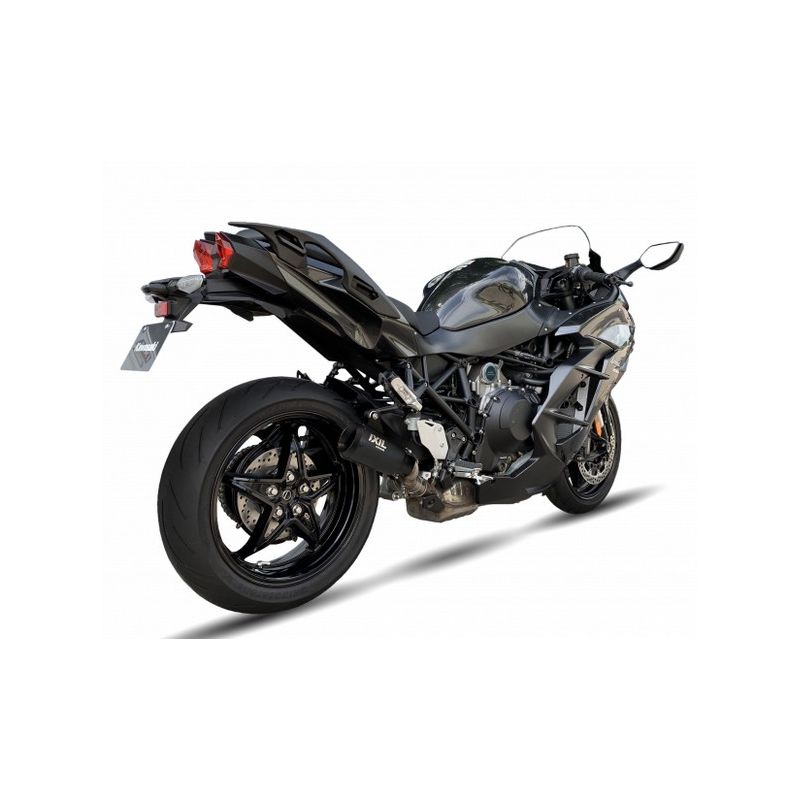 pot d'Échappements ixil RB RACE XTREM BLACK KAWASAKI H2 SX - SX SE, livré avec le nécessaire de montage. Silencieux racing non homologué conique fabriquée en acier inoxydable AISI304 avec finition laquée noire.