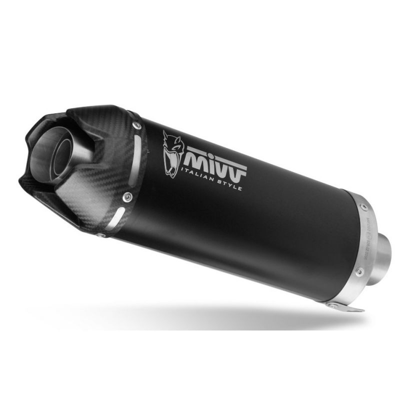 pot d'échappement moto MIVV AK-1 inox noir avec embout carbone livré avec le nécessaire de montage, silencieux homologué