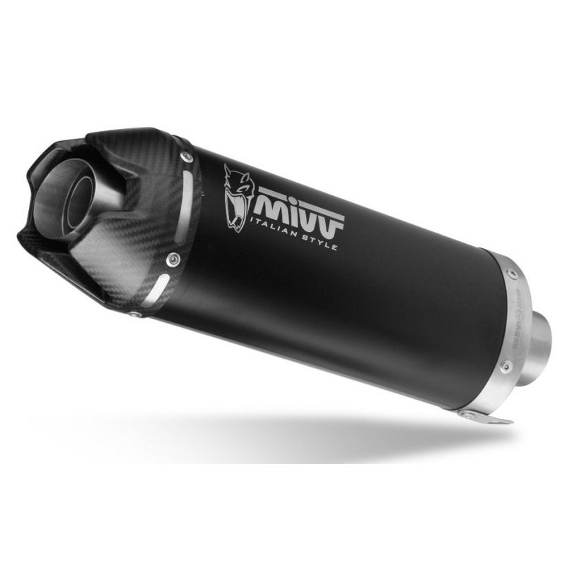 pot d'échappement moto MIVV AK-1 inox noir avec embout carbone livré avec le nécessaire de montage, silencieux homologué