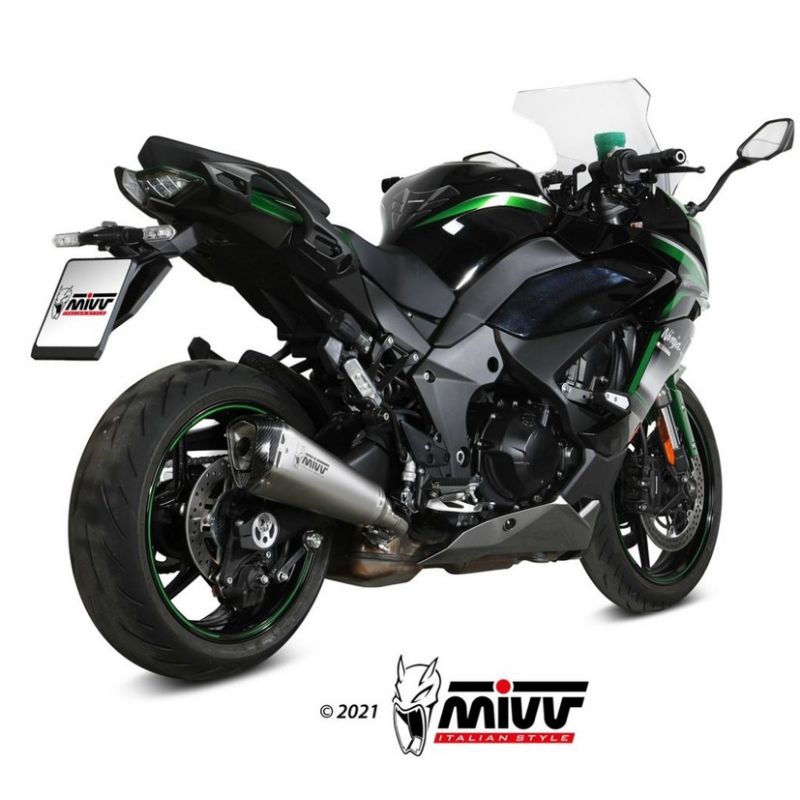 pot d'Échappement MIVV DELTA RACE silencieux en différentes finition inox brossé embout carbone homologué hexagonal avec le nécessaire de montage