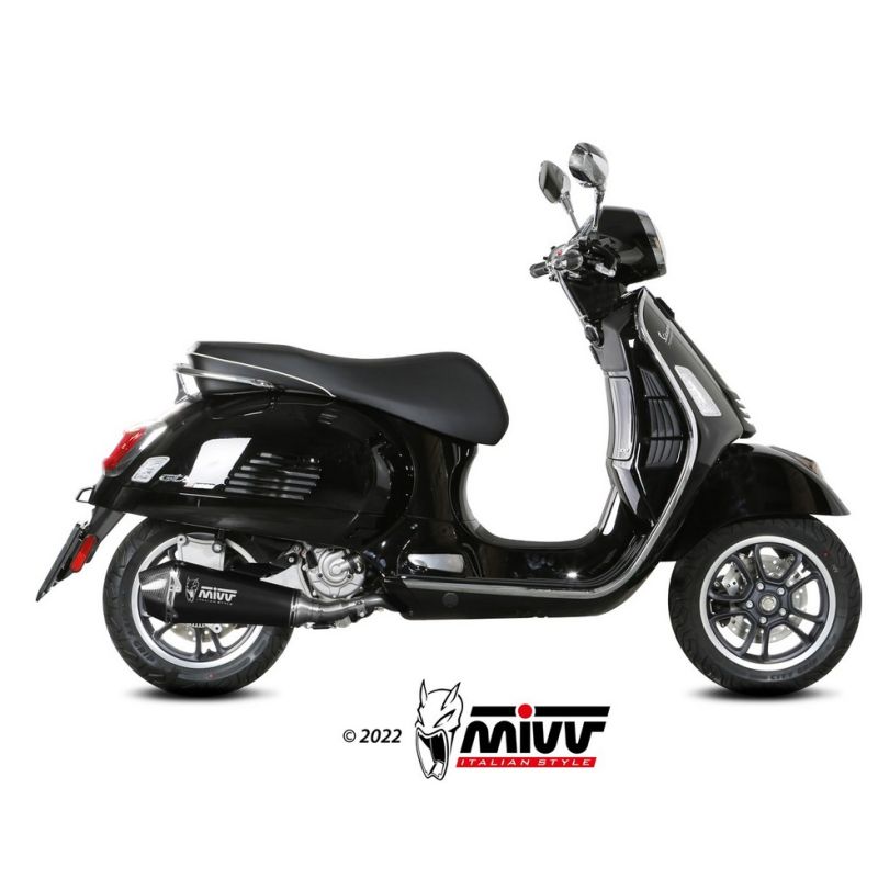 pot échappement MIVV DELTA RACE VESPA GTS 300 GTV 300 avec le nécessaire de montage, silencieux inox noir embout carbone homologué