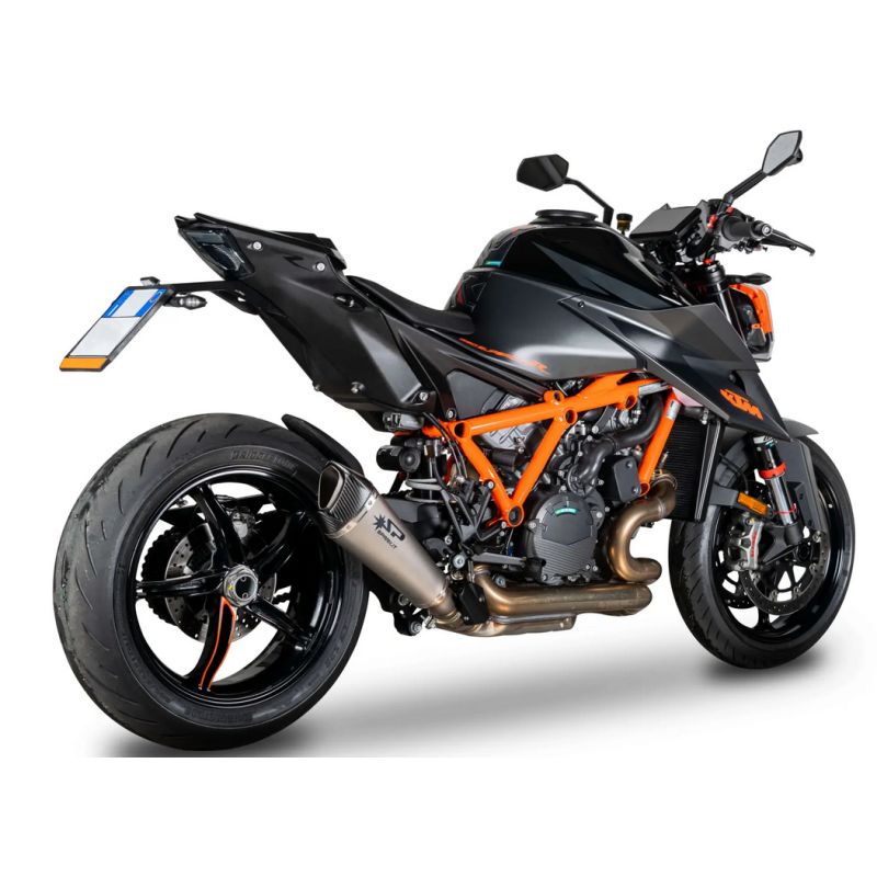 Silencieux pot d'Échappement moto Slip-On en inox SPARK KONIX EVO pour KTM 1290 SUPER DUKE 1390 SUPER DUKE homologué, livré avec le nécessaire de montage.
