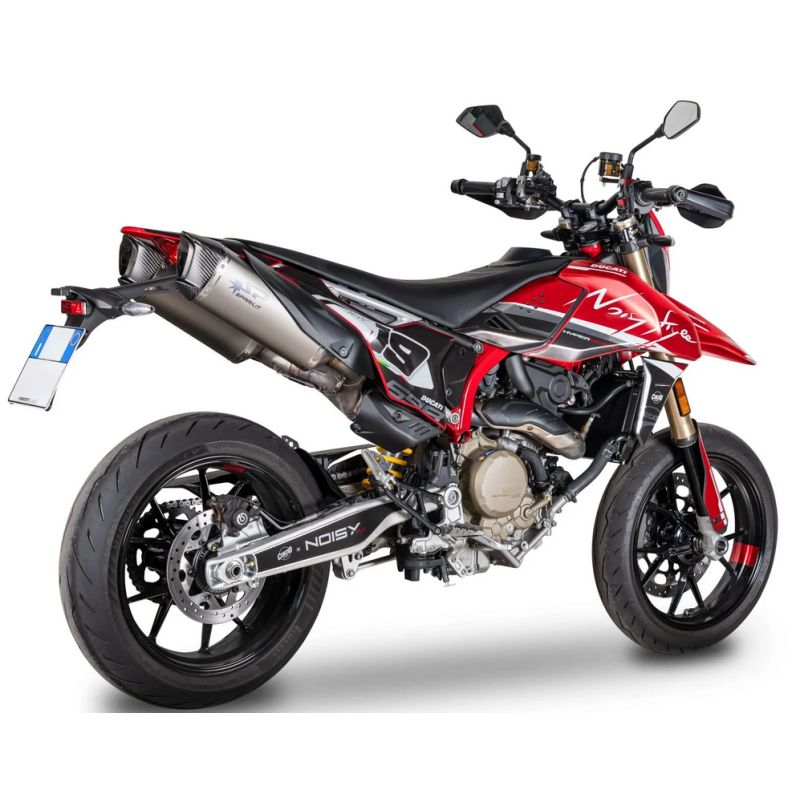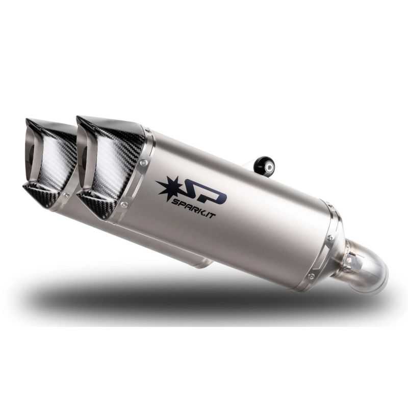 Silencieux doubles pot d’Échappement moto en titane SPARK Double Force EVO avec embout carbone pour DUCATI 698 HYPERMOTARD MONO homologué livré avec le nécessaire de montage.