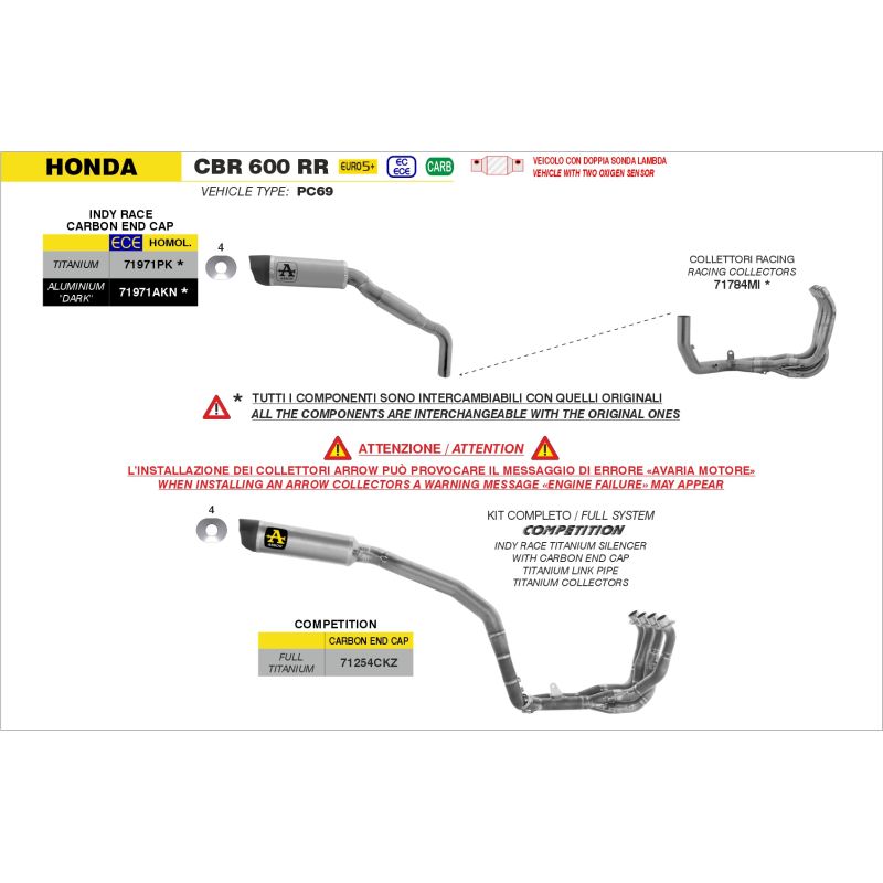 Ligne complète complète pot d'Échappement ARROW compétition avec silencieux titane et collecteur titane