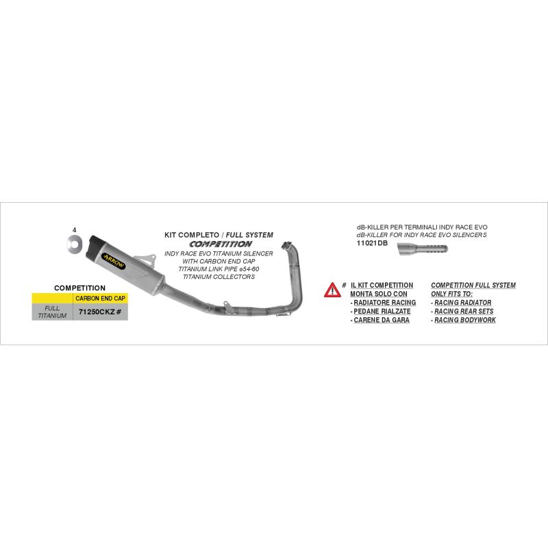 Ligne complète pot d'Échappement ARROW compétition avec silencieux titane embout carbone et collecteur titane