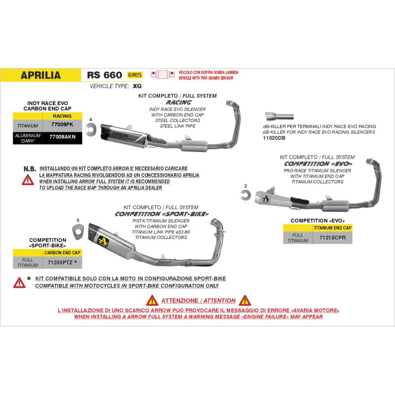 Ligne complète complète pot d'Échappement ARROW compétition avec silencieux titane et collecteur titane pour Fim 105db