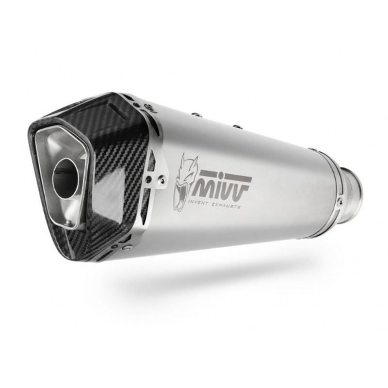 Ligne pot d'Échappement MIVV DELTA RACE silencieux homologué hexagonal embout carbone en différentes finition, avec le necessaire de montage