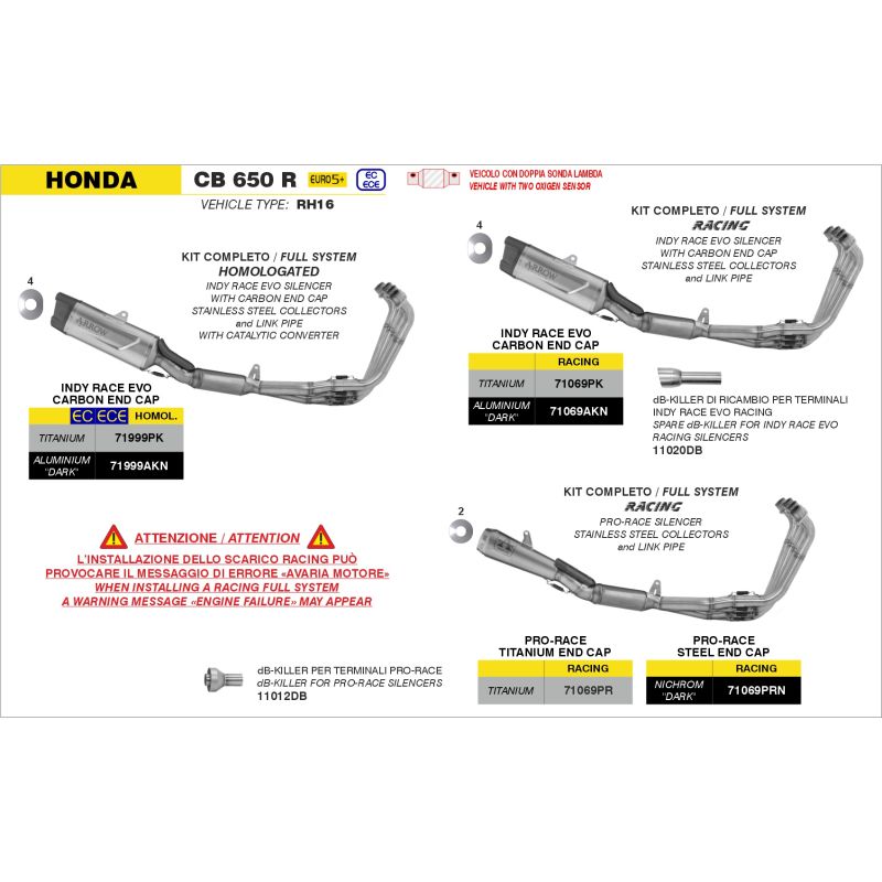 Ligne complète pot d'Échappement ARROW INDY RACE homologué pour moto HONDA CB650R CBR650R Collecteur inox et silencieux indy race evo