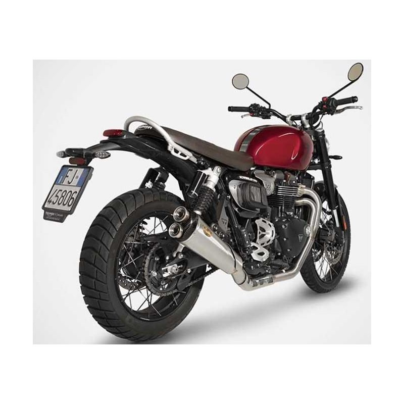 Ligne d'Échappement Zard pour Triumph 1200 Scrambler Racing ou Homologué, double sortie. Gain de poids , et une musique envoutante pour ces silencieux !