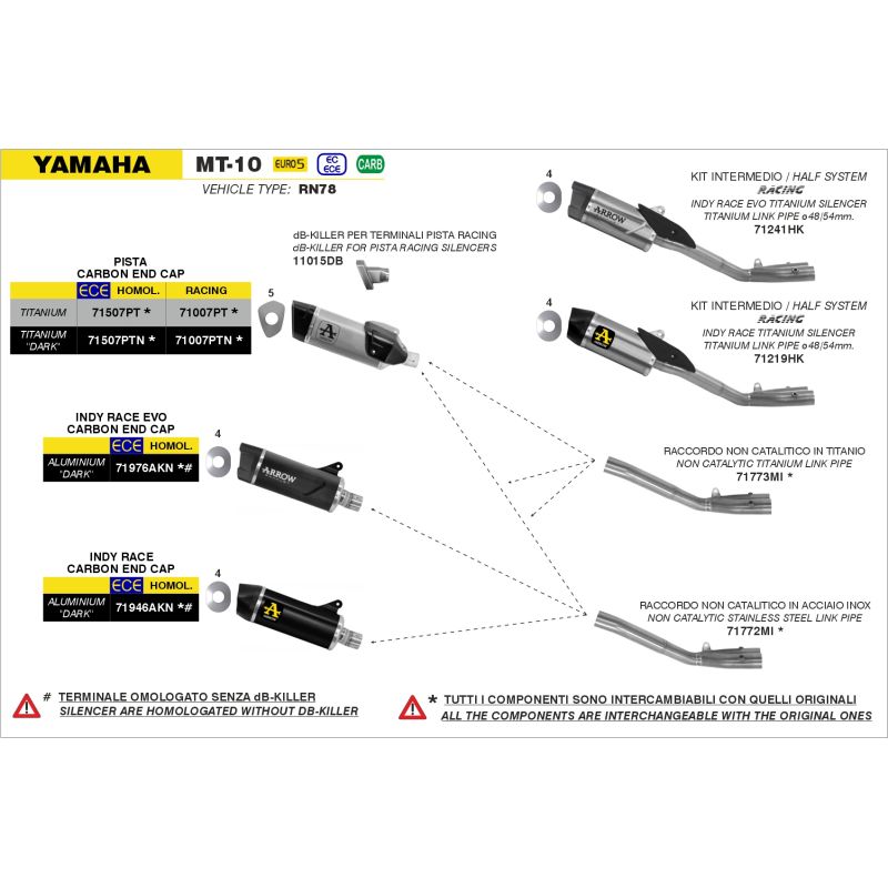 Pot d'Échappement ARROW INDY RACE titane embout carbone racing non homologué pour YAMAHA MT-10 se monte directement sur le collecteur d'origine