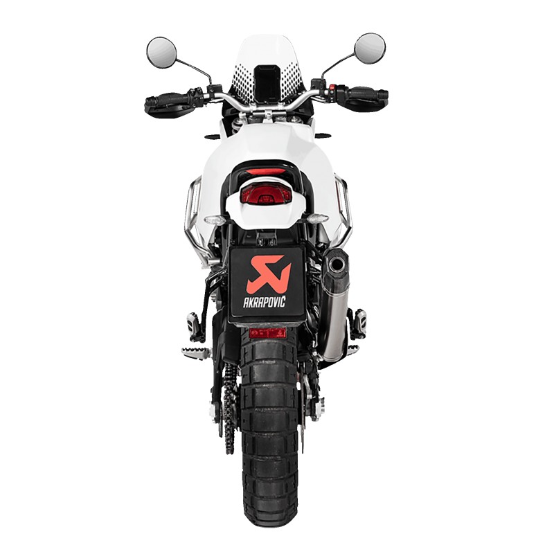 pot d'échappement moto AKRAPOVIC titane embout carbone DUCATI DESERT X 950 Homologué Europe et testé sur circuit pour une performance optimale sur la route.