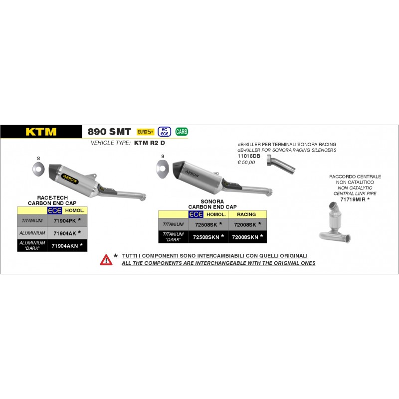 ARROW est toujours attentif aux exigences croissantes des usagers qui réclament la possibilité de s'équiper de systèmes d'échappements homologués, tout en garantissant de bonnes prestations et un look réussit.