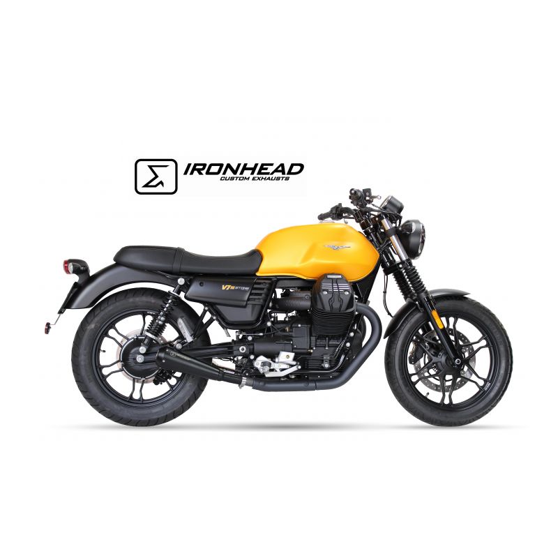 Pot d'Échappements ixil IRONHEAD MOTO GUZZI V7 II en inox, livré avec le nécessaire de montage. Silencieux racing non homologué